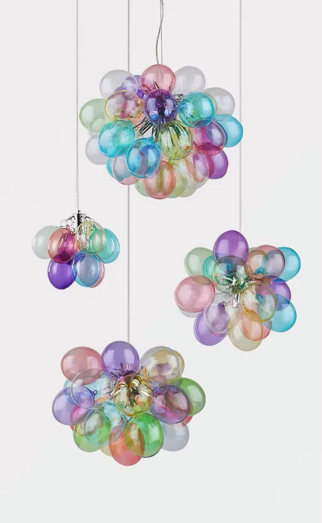 Modern és játékos függeszték, mely kézzel fújt üvegbuborékokból áll. Tökéletes választás nappalikba, étkezőkbe vagy akár kreatív irodai terekbe. Több méretben és színben elérhető.