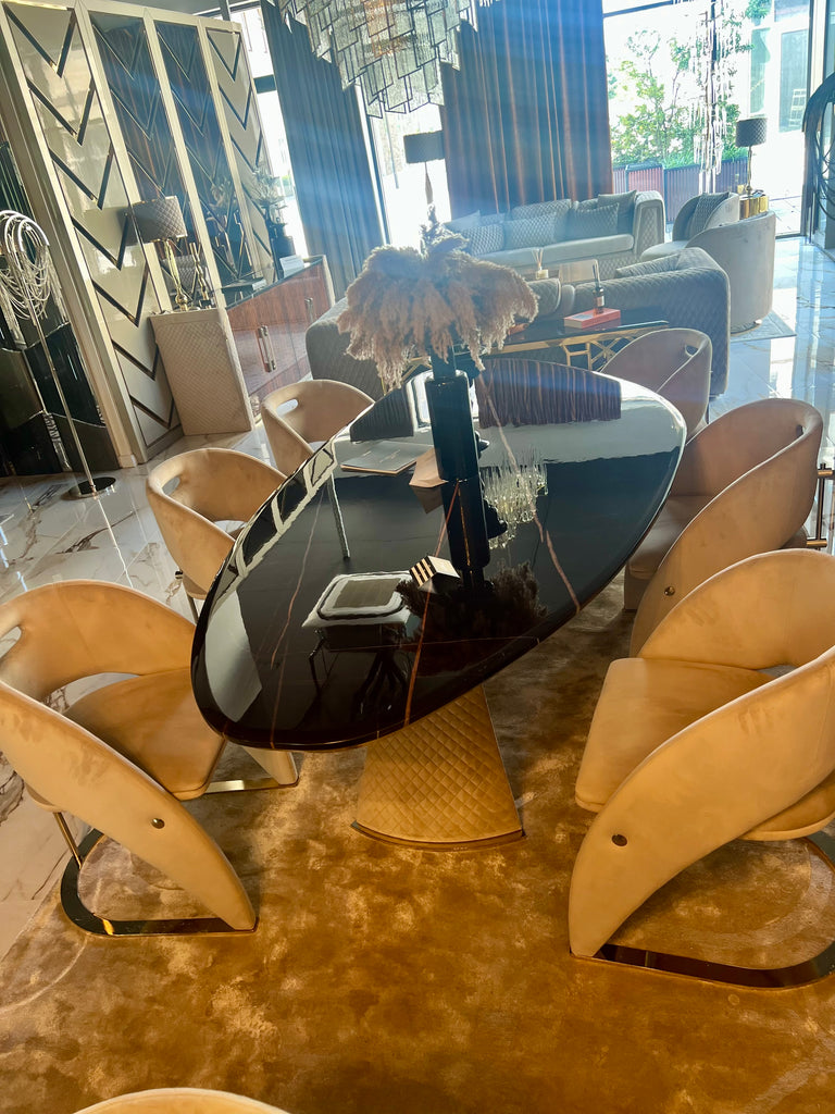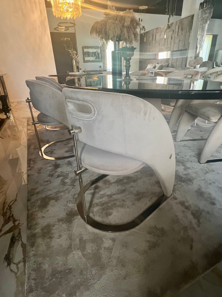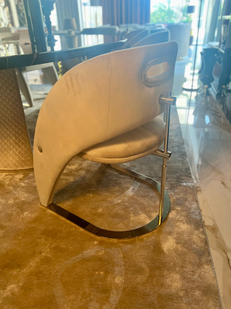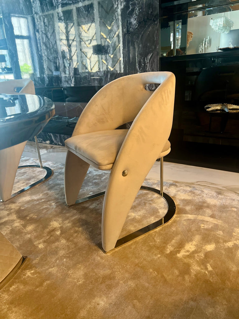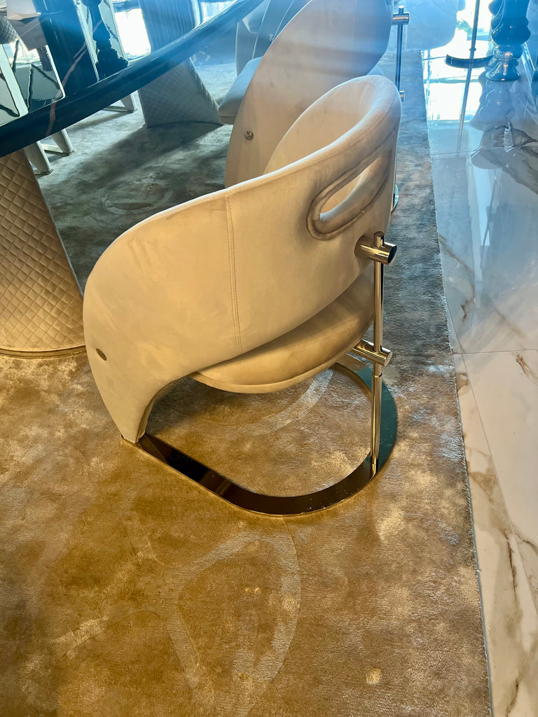 The Phaselis chair is the perfect blend of modern luxury and timeless elegance. Its clean lines, use of premium materials and comfortable design make it an ideal choice. dining rooms or representative spaces. The curved backrest and the stable metal base radiate harmony, while the soft upholstery ensures maximum comfort.