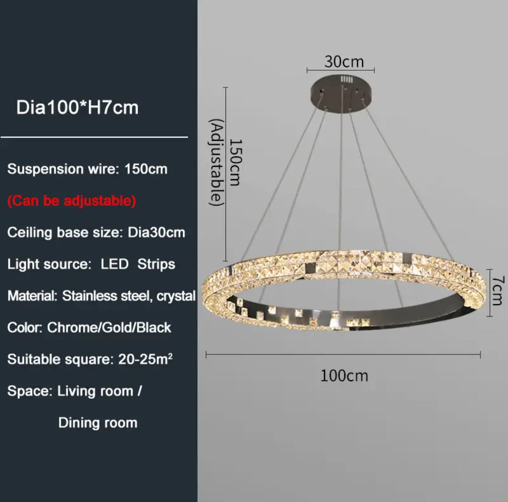 - 1 ring: 100 cm diameter, 7 cm high, 30 cm ceiling suspension diameter
