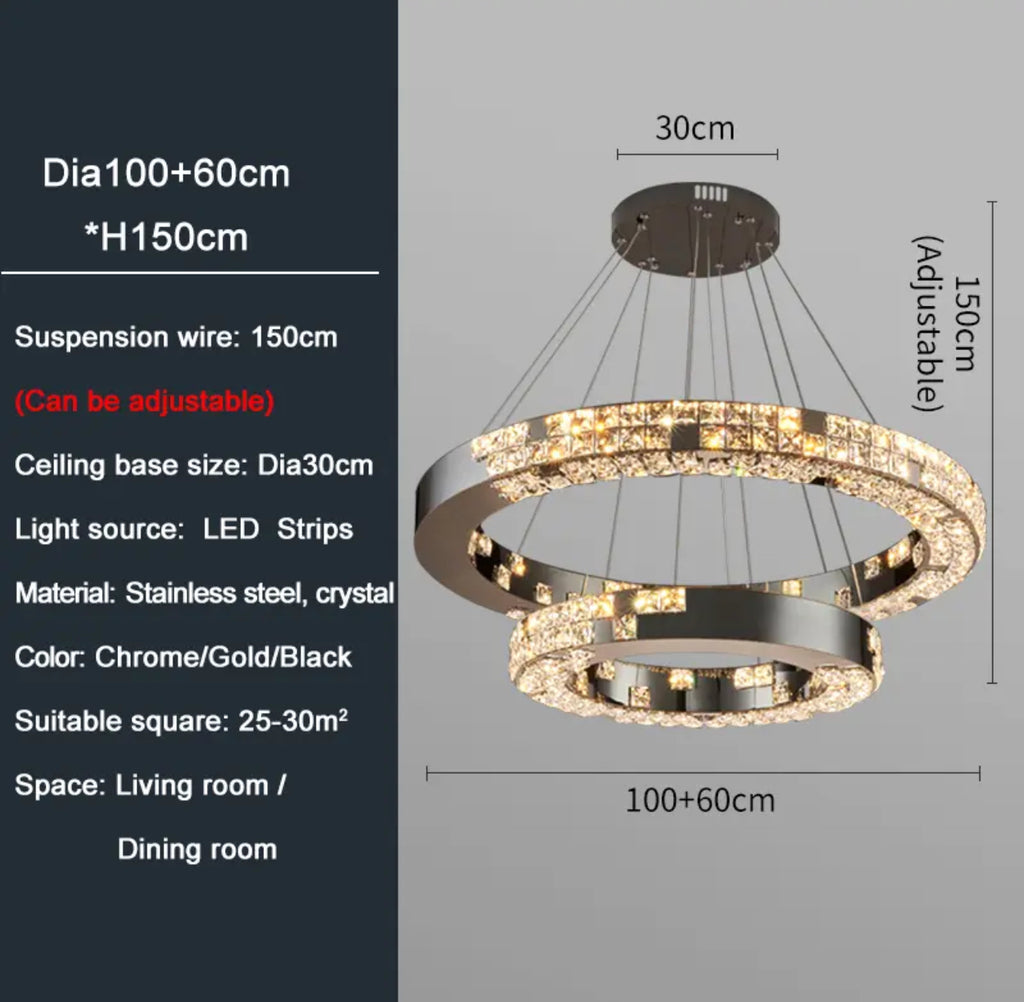 - 1 ring: 60 cm diameter, 7 cm high, 25 cm ceiling suspension diameter