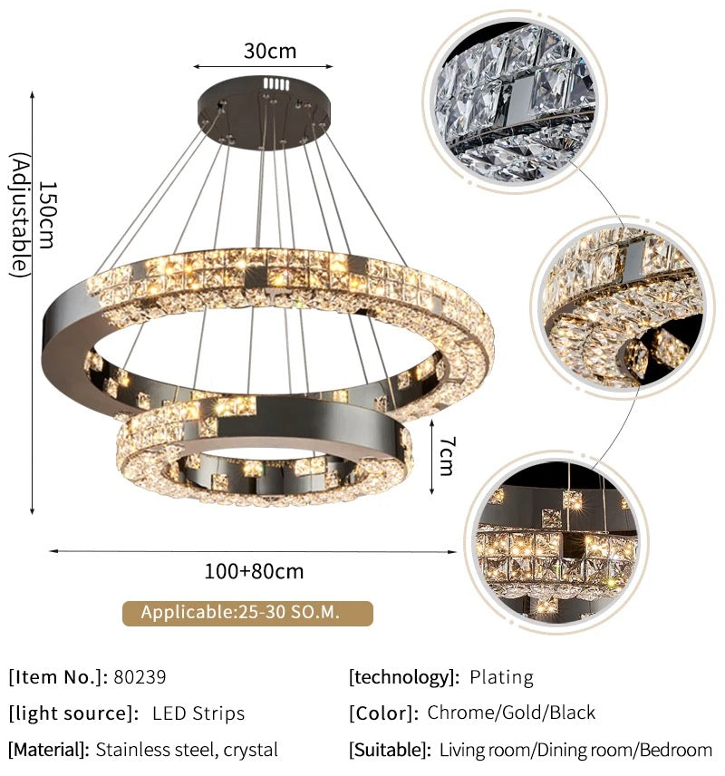 - 1 ring: 80 cm diameter, 7 cm high, 25 cm ceiling suspension diameter